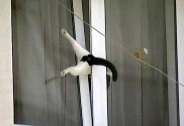 Раньше котам, которые выходят самостоятельно гулять на улицу было гораздо проще. окна в домах были деревянными и имели вверху небольшие форточки - как раз для того, чтобы хвостатый питомец через них выходил из квартиры на улицу и забирался обратно. Сейчас же все это ушло в прошлое, во всех домах устанавливаются пластиковые окна, которые для проветривания помещения приоткрываются сверху. Кошкам, естественно, через них выбираться на улицу очень и очень неудобно. Однако самые отчаянные все-таки пытаются проскочить и через них. Не так давно жители одной улицы смогли наблюдать странную картину, когда несчастный кот, пытаясь забраться домой через вот такое вот приоткрытое окно, просто застрял в нем. Бедняга так прочно застрел в щели, что никак не мог ни пролезть внутрь, ни выскользнуть снова наружу. Он висел с торчащими наружу задними лапами, извивался и всячески старался призвать к себе кого-нибудь на помощь. Но на его беду, хозяев дома не было, так что бедол