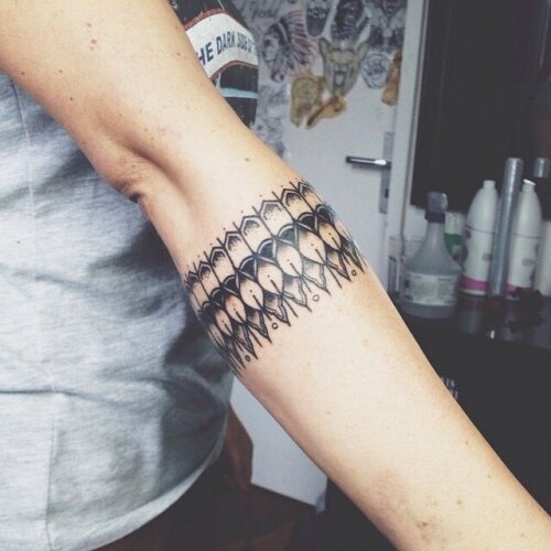 Браслеты украшают тело без особых значений – если это не важные ассоциации-воспоминания (как серебряные подвески «шармы»), даже тату вокруг руки или ноги наносятся только для красоты. Они подходят любому возрасту и полу, их удобно скрывать под одеждой и часто с них начинаются рукава. ПОПУЛЯРНЫЕ МЕСТА ТАТУ-БРАСЛЕТ НА ЗАПЯСТЬЕ Ну а как же ещё! Такие татуировки легко скрыть рукавами одежды или настоящими браслетами, если на работе запрещают нательные рисунки, они выглядят ненавязчиво и аккуратно. БРАСЛЕТ НА ПРЕДПЛЕЧЬЕ С них чаще всего продолжают украшать себя дальше. Набиваешь небольшой браслетик, влюбляешься в него, кажется мало и хочется продолжить :) БРАСЛЕТ НА НОГЕ Индийские мотивы, кельтика, имитация подвесок – вариантов масса и каждый зависит от вашей фантазии. ПОПУЛЯРНЫЕ МОТИВЫ УЗОРЫ: КЕЛЬТСКИЕ, ГЕОМЕТРИЧЕСКИЕ, АЖУРНЫЕ Самый частый элемент в браслетах. Не требует объёма и реализма, смотрится классно. ИМИТАЦИЯ УКРАШЕНИЙ, БУСЫ, ПОДВЕСКИ Чтобы выглядело максимально реали
