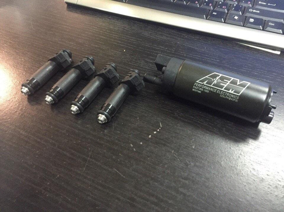 Элементы топливной системы будут меняться, это даже не обсуждалось. Форсунки производительностью 470 сс и штатный насос заменим на форсунки 630сс и насос AEM производительностью 320 л/ч. Бак на первый сезон оставим штатный.