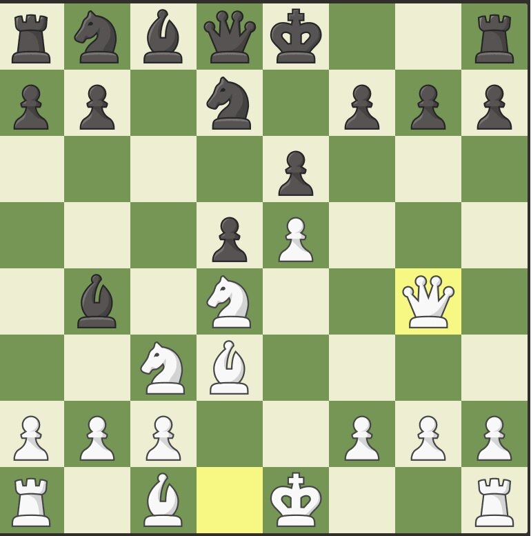 Ловушка в Сицилианской защите за белых. 1. e4 c5 2. Nf3 e6 3. d4 cxd4 4. Nxd4 Nf65. Nc3 Bb4 6. Bd3 d5 7. e5 Nfd7 8. Qg4 И после размена ферзей, у белых явное преимущество двух слонов.