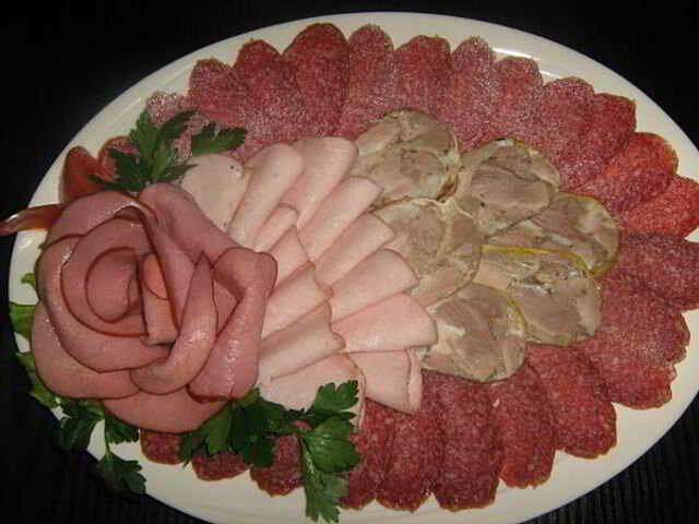 Как и обещала напишу некоторые рецепты для банкетного стола Закуски. Мясная нарезка:1 порция=150гр (обычно так)нарезка-пластинками состав: вар.язык=50гр ветчина=50гр колб.коп=50гр конечно же есть варианты.украшаем овощами.маслинками.подаем с горчицей Сырные шарики: 1 порция=160гр (примерно) шариками состав: тв.сыр=100гр в.яйцо=1шт. чеснок=1шт. краб.пал=3 майонез=30гр(примерно) Все трется через мелкую терку.перемешивается с майонезом.лепятся шарики.Раскладываем на листик салата . 3.Блинчики с икрой и с соусом. Жарим обычные блинчики.Дальше готовим соус:есть два варианта один сладкий другой солоноватый.Попробуйте оба. 1 вариант : смешайте 2ст ложки майонеза с 2 мя ст ложками сметаны.добавьте по вкусу сахарную пудру. 2 вариант ; смешайте творожный сыр с майонезом. Промажьте блинчик любым соусом.сверните рулетиком.Теперь надо оставить его .чтобы пропитался часа на два. После нарежьте наискось и св