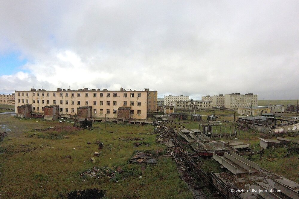 Про посёлок я рассказал в прошлой публикации, сейчас предлагаю заглянуть в дома. Дома, в основном, были трех- и пятиэтажные. В нескольких пятиэтажках сейчас еще живут люди. Давайте зайдем внутрь. В большинстве квартир все, что можно применить в хозяйстве, не уцелело. Почти везде сняты полы, их используют при строительстве сараев. Некоторые дома опустели совсем недавно. Обратите внимание на деталь в правой части кадра, это переносной туалет-ведро. Трудно представить, но в квартирах не было туалетов. Они были расположены в деревянных пристройках. Каждый туалет служил жителям нескольких квартир. В таких условиях жили люди, которые несли круглосуточное боевое дежурство. Из серии «Остановившиеся часы Чукотки». Пустые квартиры, какие-то вещи не вывезены бывшими жильцами. Вспоминает Рыбак С Сахалина: Отец был офицером. "Соседи" часто залетали, в коридоре радио: «Б