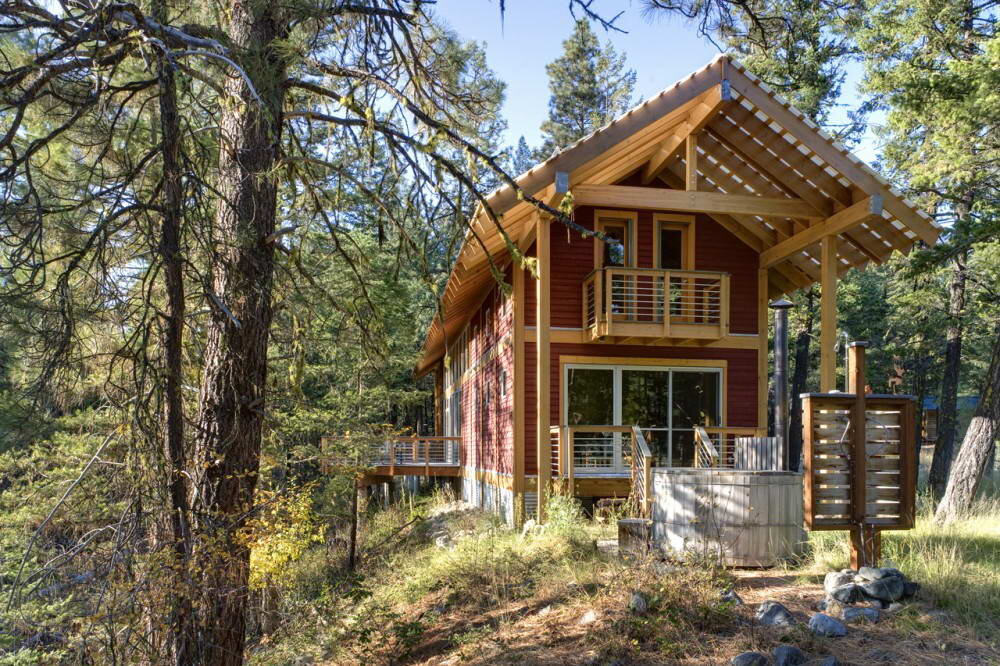 Этот дом построен на участке в зрелом хвойном лесу, который ранее в течение многих лет использовался как семейный палаточный лагерь. Дом выполнен из эффектных клееных деревянных конструкций. У него просторная двусветная гостиная, есть кухня, столовая и три спальни. Название: Foster Loop