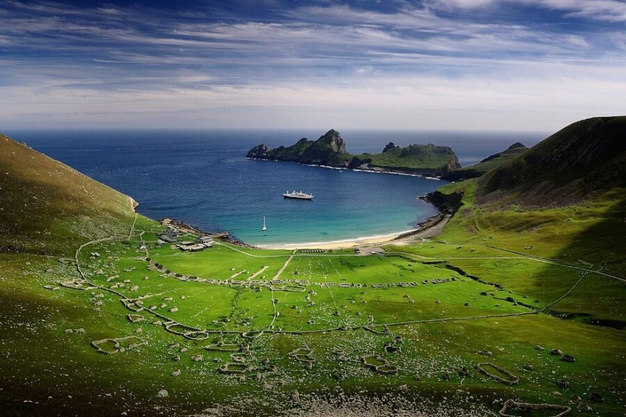 Читайте эту статью на сайте Идеальный турист Сент-Килда – архипелаг в Шотландии, расположенный в 64 км к западу от Внешних Гебридских островов. Этот архипелаг по праву считается самой отдаленной и изолированной частью Британских островов. Территория Сент-Килда заполнена гранитными булыжниками и возвышающимися скалами, которые принимают на себя всю мощь североатлантической погоды. Здесь настолько сильный ветер, что деревья отказываются расти. Жизнь в суровых условиях В таком недружелюбном климате когда-то существовало небольшое сообщество людей, которые выживали, в основном, питаясь морскими птицами и их яйцами. Эта необычная группа мужчин, женщин и детей жила жизнью охотников-собирателей и первое десятилетие 20 века охотилась на бакланов, глупышей и тупиков, а также занималась выращиванием сельскохозяйственных культур. После тысячи лет изоляции все население острова эвакуировали на большую землю, чтобы спасти их от вымирания, так как запасов урожая катастрофически не хватало, а также