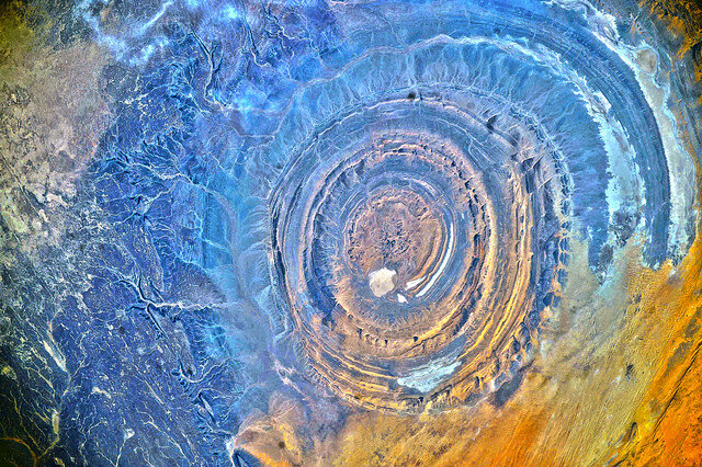 К ним относится загадочная структура Ришат, больше известная как око Земли, расположенная посреди необъятной пустыни Сахара. Это геологическое образование настолько велико, что его никто не мог обнаружить с поверхности Земли. И лишь полвека назад, когда началась эра освоения космоса, появилась первая фотография этого загадочного объекта, сделанная с борта космического корабля.