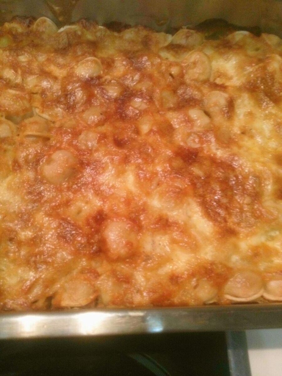 Ещё один вариант супер быстрого ужина - запеченные пельмени. И, что не может меня не радовать, едят у меня их все: от мала до велика. Рецепт наипростейший. Люблю запеканки за то, что их поставил в духовку и свободен. Итак рецепт: Приготовление: 1. Форму смазать растительным маслом: и дно, и бока. 2. Выложить замороженные пельмени в один слой. 3. В отдельную чашку натереть сыр на крупной тёрке. 4. Выложить майонез к сыру, перемешать. 5. По чуть-чуть наливать в массу холодной воды и тщательно перемешивать. Масса должна стать как сметана средней густоты. 6. Равномерно вылить сырную смесь на пельмени, стараясь покрыть всю поверхность. 7. Поставить форму в холодную духовку на средний огонь. Я ставлю на 160 градусов (максимальная температура 240 градусов). 8. Запекать не меньше часа, до коричневой корочки. Пельмешки получаются чудеснейшими: сверху хрустящая корочка, внутри сливочная начинка. Вкус конечно во многом зависит от качества самих пельменей. Покупайте проверенные или можно запечь