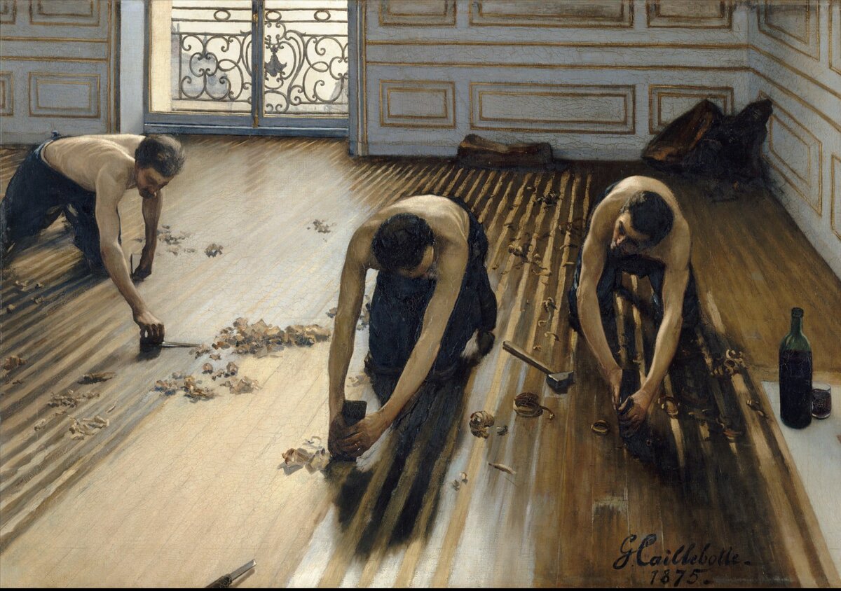 Гюстав Кайботт (Gustave Caillebotte, 1848—1894) Сложно поверить, что эти две картины написал один художник. Тем не менее это так. :) И за «Паркетчиков» ему досталось и от критиков, и от друзей. В этой работе все усмотрели не необычный ракурс на рядовую ситуацию, а снобизм богатого человека. Прекрасный пример того, когда читатель, критик или зритель лучше всех знает, что хотел сказать автор в своей работе Один из прекрасных импрессионистов. Нельзя сказать, что он забыт и не известен. Все же полотно «Человек на балконе, бульвар Осман», в 2000 году было продано более чем за 14 млн долларов. Но имя Гюстава Кайботта так и не поставили в один ряд с его друзьями-художниками: Моне, Мане, Дега, Ренуаром, Сезанном, Сислеем. Ренуар, кстати, был душеприказчиком Кайботта и после его смерти занимался наследственными делами. Например, договаривался с французским правительством, чтобы коллекцию работ импрессионистов, которую весьма обеспеченный Гюстав собирал всю жизнь, разместили в Люксембургском