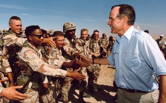 4. Он руководил последним успешным военным вмешательством в истории США Как президент, Буш стал изображаться враждебными демократами и республиканцами как слабак. Это может показаться несправедливым пятном против бывшего президента. Он не только показал себя во Второй мировой войне, но и провел последнее успешное вмешательство в историю США в качестве президента. Сейчас «военное вмешательство» кажется синонимом катастрофы и попадания в военное болото. Ирак, Афганистан и Ливия создали гигантские беспорядки, в то время как борьба с ИГИЛ (запрещенная в России организация) была ограничена авиа ударами и поддержкой иракских и курдских военных. Но хотя вмешательство США на Ближнем Востоке не всегда было бесполезным. Первая война в Персидском заливе в 1991 году достигла всех поставленных целей. Конфликт стартовал после того, как иракские силы Саддама вторглись в Кувейт и грозили вторгнуться в Саудовскую Аравию. С выдающимся дипломатическим профессионализмом Буш убедил больше 30 государс