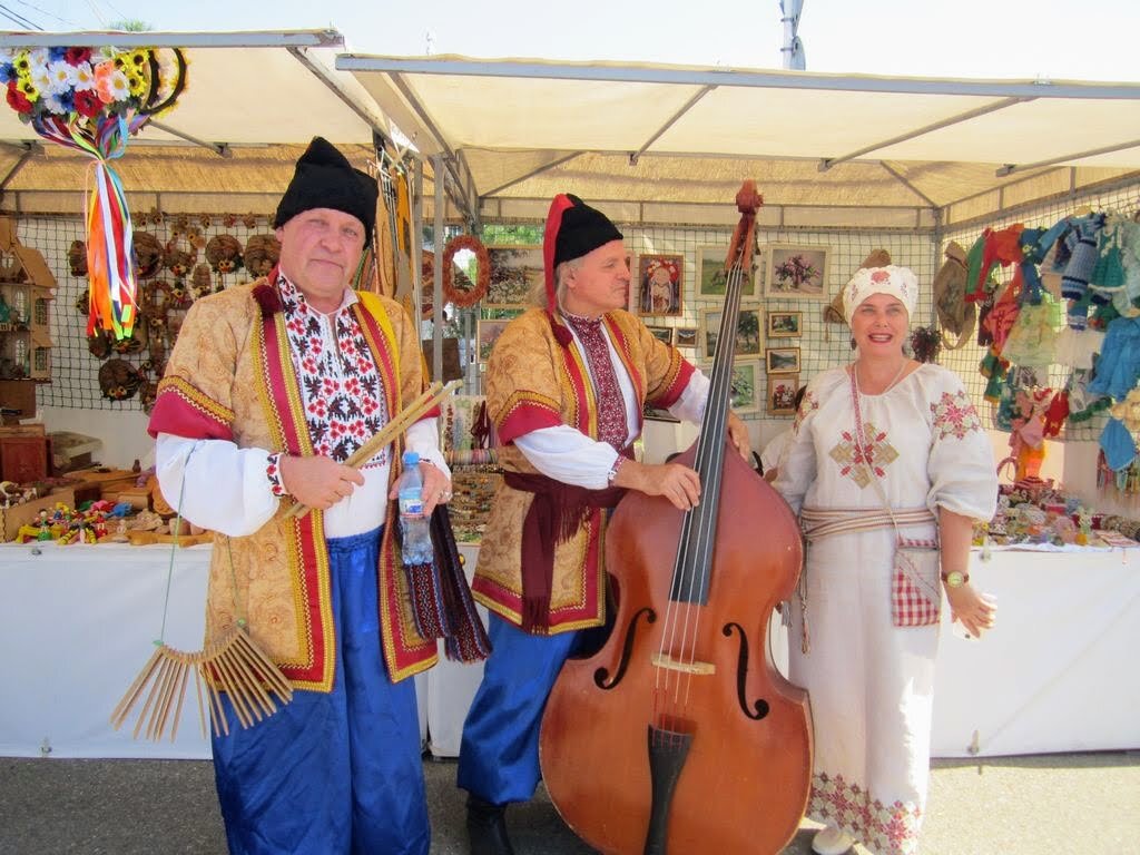 На Кубани и сегодня любят носить национальную одежду, правда её можно увидеть чаще всего по праздникам, но и это в современное время не может не радовать. Оригинальный орнамент и национальный колорит никого не оставит равнодушным. А угощения сладостями с ароматным краснодарским чаем заставят задержаться на торжествах даже привередливых :-) Народные ансамбли плясали, играли на вот таких огромных инструментах (похоже, виолончель). Радостные и довольные люди принимали участие в конкурсах и театрализованных представлениях. Гости праздника разучивали кубанские песни, слушали задорные частушки, смотрели на проделки забавных скоморохов и веселились. Много было и мастер-классов: кто учил гончарному ремеслу, кто кузнечному делу, а кто обучал изготовлению великолепных папах и кубанок. Можно было и померить вещи, сфотографироваться с ними, произвести впечатление на окружающих и насладиться своим отражением. Такую каракулевую кубанку не прочь иметь любой казак. А вот своим происхождением эти шапки