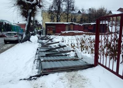 На улице Праволыбедской в Рязани неподалёку от дома 27 рухнул строительный забор с навесом. Горожане отметили, что конструкция не выдержала массы выпавшего за минувшие сутки мокрого снега и упала на тротуар. Люди не пострадали. | Понравилась новость? Ставьте лайки и подписывайтесь на наш канал.|