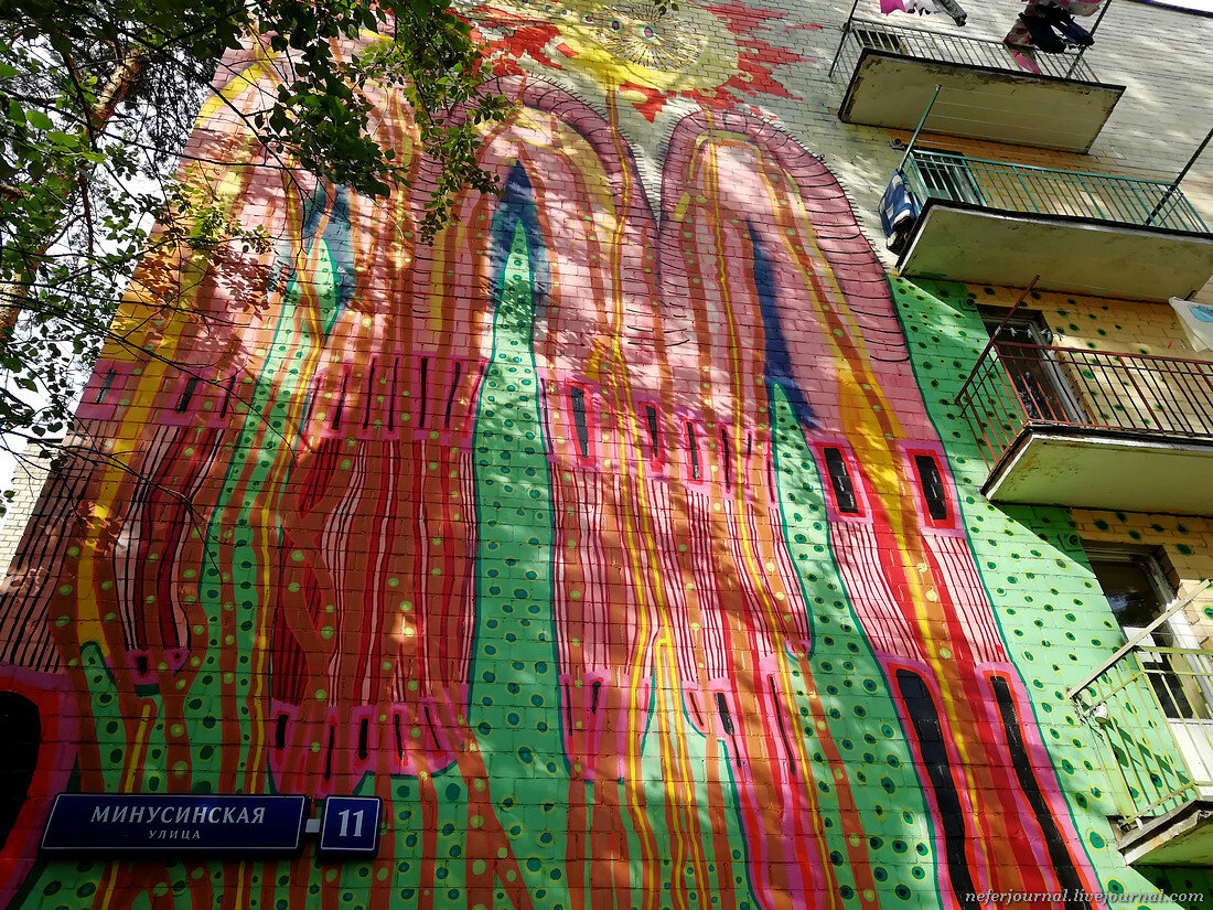 Надо же, они еще сохранились. В 2007 году художники расписали фасады жилых домов. Все они находятся в Лосиноостровском районе Москвы, между Изумрудной улицей и Янтарным проездом. Граффити расположены компактно, вполне можно обойти пешком.