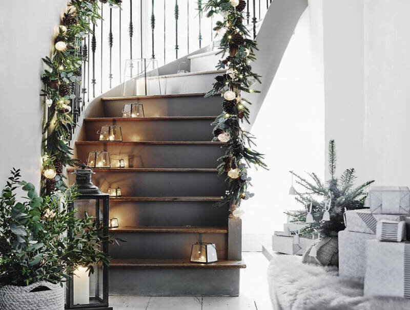 Секрет добавления рождественских украшений для лестниц - это расслоение.