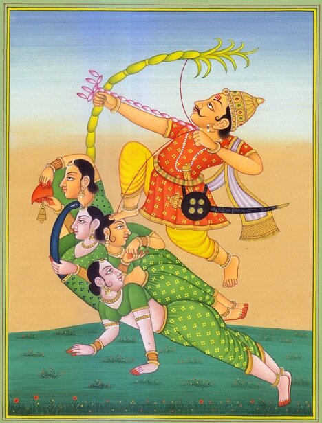 Кама (буквально означает желание) у индусов является богом любви. Его основная функция – возбуждать желание в мужчинах и женщинах. Он поражает свои жертвы цветочными стрелами. Древко лука Камы сделано из сахарного тростника, а тетива – из роя жужжащих пчел. Жену Камы звали Рати (буквально страсть). Друг его Васанта (буквально: весна) мастерил для него лук и подбирал стрелы. Кама был сыном Брахмы. Как только он родился, то тут же попал стрелой в родного отца, и бог-Творец влюбился в одну из собственных дочерей. В индуистских текстах подробно описываются многие неприятности, которые причинил бог любви богам и людям. Он бродит по лесным просторам, посещает фонтаны, наведывается в города и деревни, возбуждая повсюду любовные стремления, внушает вожделение аскетам и сбивает с пути добродетели достойных женщин. Весна – самое подходящее время для его проказ. Раненные стрелами Камы, даже преданные жены склоняются к адюльтеру, юные девицы уступают соблазнителям, а молодые люди совершают всяческ