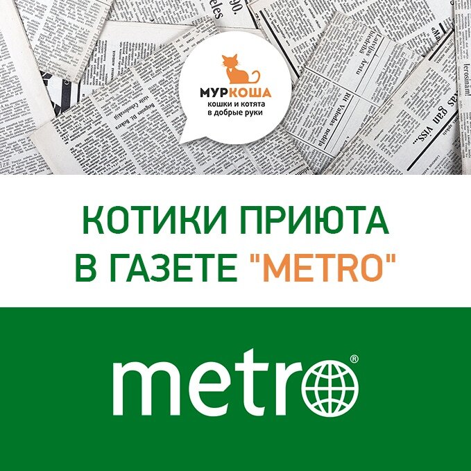 Котики приюта "Муркоша" попали на страницы газеты "Metro "! Надеемся, их истории тронут читателей и малыши совсем скоро обретут новый дом! Мы в это верим, а вы? >>Поддержите приют ❤❤❤ и подпиской<<