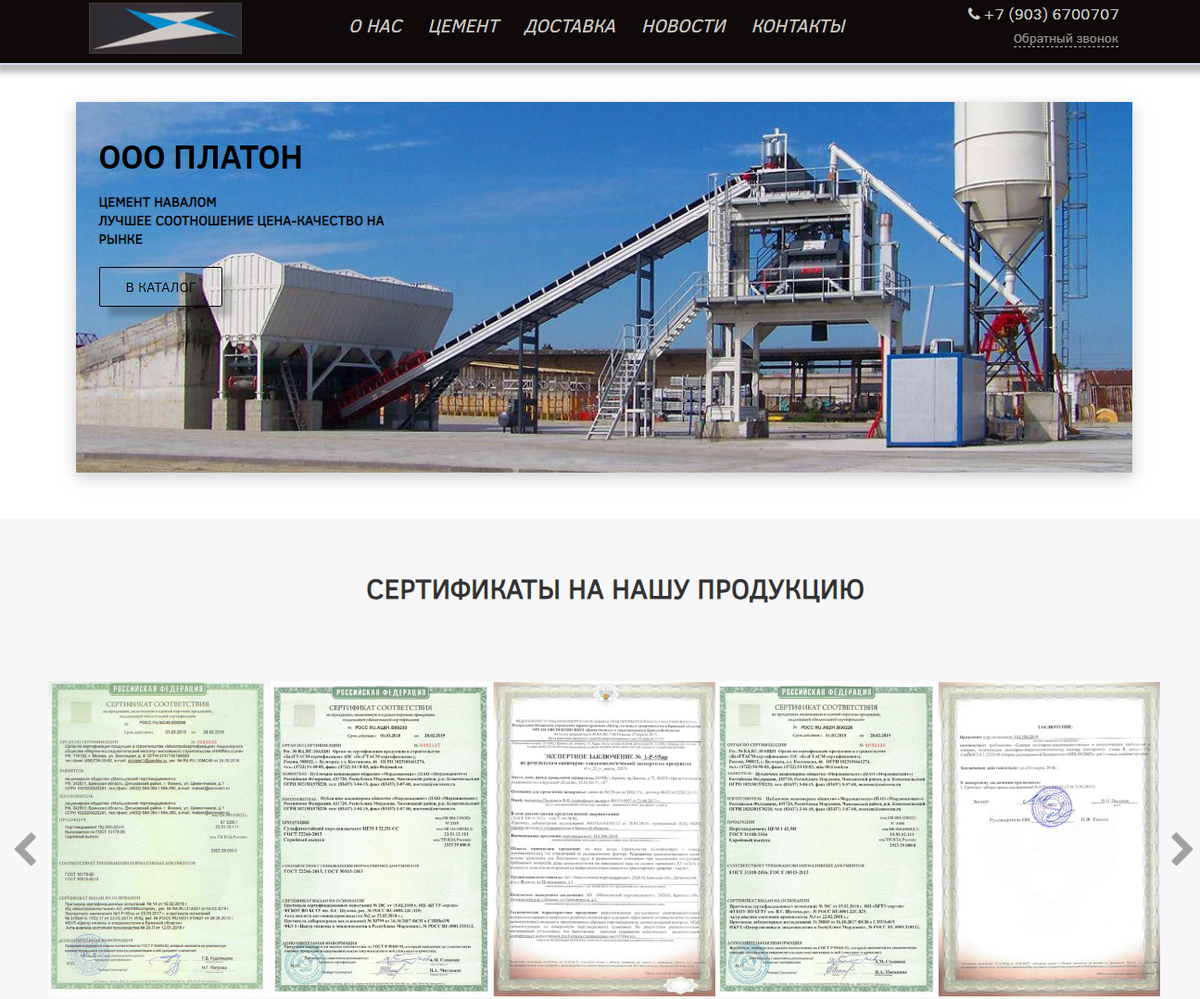 Завершили работу над созданием сайта для крупного поставщика строительных материалов(товарный бетон, цемент, ЖБИ, щебень, арматура и т.д.).Являющегося официальным партнером крупнейшего российского производителя цемента - холдинга "ЕВРОЦЕМЕНТ груп".