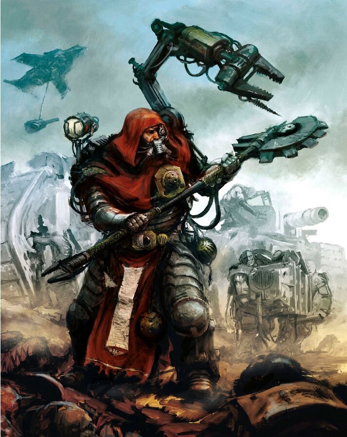 Adeptus Mechanicus – это жестокий и бездушный культ, выросший из убеждений и верований тех, кто выжил в суровой марсианской пустыне во время Эпохи Раздора. Те, кто когда-то боролся за выживание путем механических улучшений тела, уверовали в то, что плоть слаба. Лишь машина является высшей формой жизни, не подверженной ужасам радиоактивной пустыни, в которую превратился Марс после того, как рухнули его радиационные щиты, а атмосферные генераторы были взорваны. Макро-индустриальные комплексы планеты пришли в негодность, развалилась и полностью исчезла хрупкая экосистема, которую тысячелетиями взращивали и культивировали колонисты. Красная планета вновь превратилась в пустыню, которой была когда-то, в далеком прошлом.