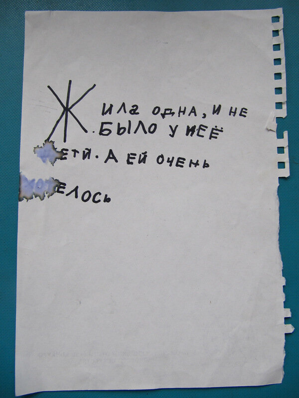 Текст, приведенный ниже, судя по почерку, может быть датирован концом 20 века, между 1998 и 1999 годами.