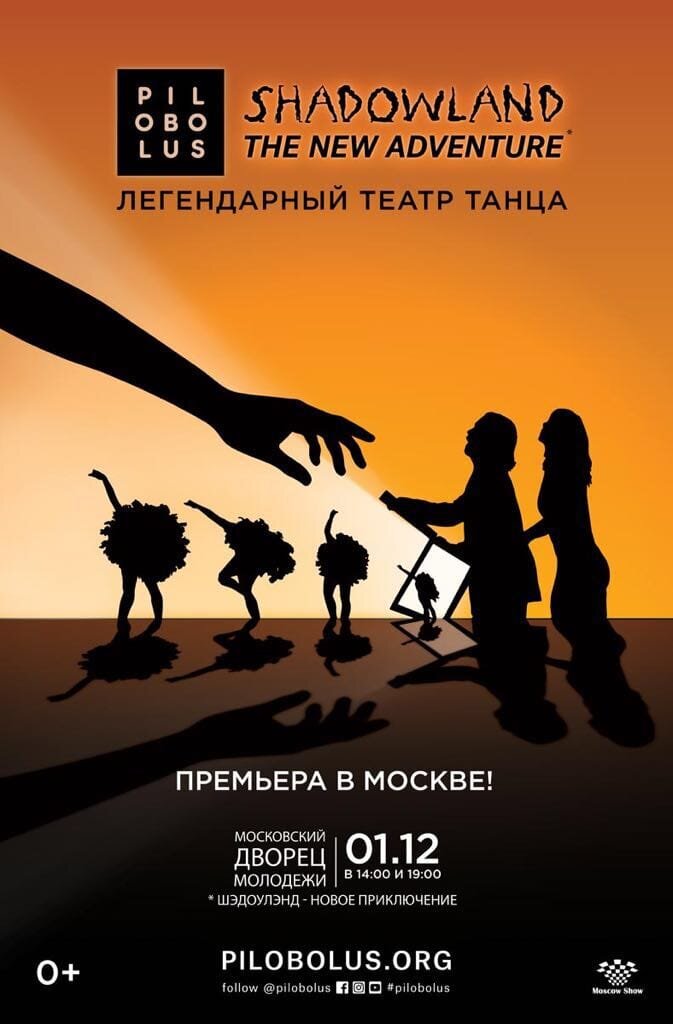 Самый популярный и знаменитый в мире театр теней (США)Грандиозное Шоу для всей семьи! Место проведения: Московский Дворец Молодежи Дата проведения: 01.12.2018 Суббота Начало: 19:00 1 декабря на сцене Московского Дворца Молодежи выступит легендарный театр танца Pilobolus со своим новым удивительным, завораживающим и ошеломляющим шоу «Shadowland: The New Adventure». Pilobolus – это синтез хореографии, пластики, акробатических трюков, гимнастики и пантомимы. Pilobolus – это театр, который может станцевать даже математическое уравнение. За всю историю коллектива только в США они выступили перед 120 миллионами зрителей! Театр Pilobolus побывал со своими шоу в 63 странах мира. Заказать билеты можно на сайте moscomteatr.ru