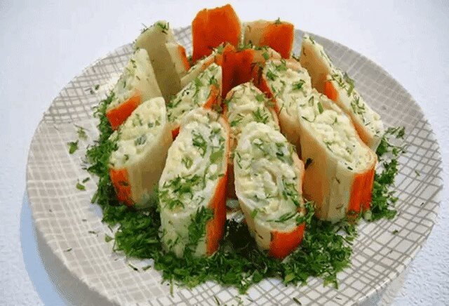 Праздничная закуска: крабовые палочки, фаршированные печенью трески