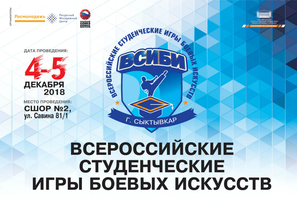 С 4 по 5 декабря Сыктывкар примет I Всероссийские студенческие игры боевых искусств. Соревнования пройдут на базе СыктГУ им. Питирима Сорокина в Центре спортивных единоборств и соберут более 200 участников, которые сразятся в шести дисциплинах: тайском боксе, смешанных боевых искусствах, дзюдо, киокусинкай и всестилевом каратэ. Университет получил право проведения Игр (этап Северо-Западного федерального округа), став победителем всероссийского конкурса молодежных проектов среди вузов, проводимого Федеральным агентством по делам молодежи. Показательное выступление спортсменов Школы боевых искусств Анатолия Чиканчи под руководством чемпиона мира по тхэквондо Дмитрия Сурнина пройдет 5 декабря в рамках закрытия соревнований. Игры боевых искусств – это новый проект Российского союза боевых искусств, направленный на развитие студенческого спорта, укрепление межнациональной дружбы народов России и повышение уровня знаний истории национальных видов спорта. Жмите "Лайк" и подписывайтесь на наш
