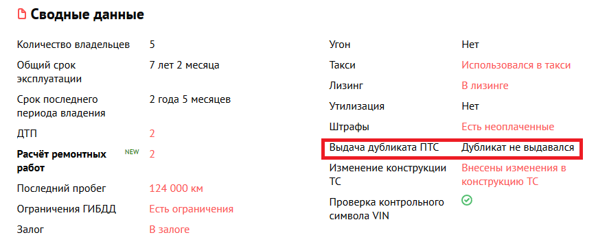 Сервис «Автокод.ру» стал показывать, выдавался владельцам автомобиля дубликат ПТС или нет. Сведения отражаются в полном отчете об авто, в блоке «Сводные данные». Михаил Белобоков, заместитель руководителя сервиса «Автокод.ру»: «Дубликат ПТС может быть получен в мошеннических целях. Это возможно, когда человек хочет продать автомобиль, который находится в залоге. Финансовая организация выдает займ под залог ПТС. Заемщик заявляет в ГИБДД об утере ПТС и получает дубликат. После этого он продает машину и перестает платить по долгам. Через какое-то время к новому собственнику приходят сотрудники компании-залогодержателя и конфискуют машину, так как до погашения долга она принадлежит им. Далее покупателя ждут судебные разбирательства, результат которых неизвестен. Также дубликат ПТС нередко получают перекупщики, чтобы «улучшить» историю авто, например, чтобы скрыть большое количество владельцев. А чем меньше владельцев, тем дороже можно продать машину. Однако не стоит отказываться от пок