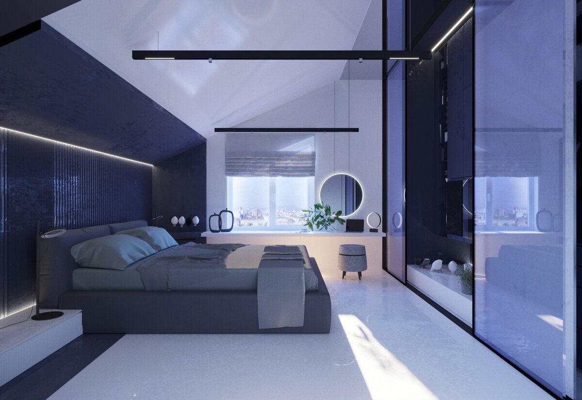 Сегодня мы вам расскажем о том: как в мансарде загородного дома получилось сделать фантастически стильную спальню. Дизайн интерьера спальни современный, при этом здесь комфортно и уютно. ДО ПЕРЕДЕЛКИ Наши герои – Марина и Дмитрий Платонцевы, впервые встретились на работе и сразу понравились друг другу. Не хотели пересудов от коллег, и долго скрывали свои чувства. Но стоило Марине перейти в другую фирму, как Дмитрий пошёл наступление. Сейчас пара готовится к рождению второй дочки, а старшая – Анюта, радует родителей успехами в спорте и в частности – в художественной гимнастике. ОЖИДАНИЯ ГЕРОЕВ Наша мечта – стеклянная стена, встроенный в стену огромный шкаф, телевизор и большая кровать под мансардными окнами. По настроению хочется светлого пространства с отделкой из натуральных материалов, и по возможности с сохранением в отделке дерева. И, конечно же, большое внимание просьба уделить кровати: в семье планируется прибавление, так что этот вопрос очень важен. А вот наличие зеркала совер