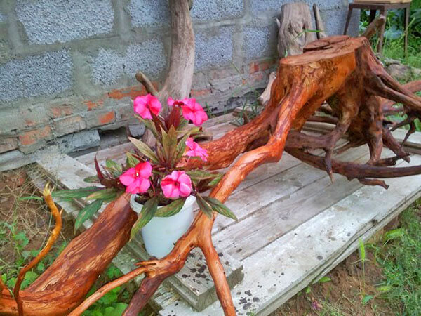 Если вы хотите в саду красивое и оригинальное кашпо, то на помощь вам придут опять же коряги.