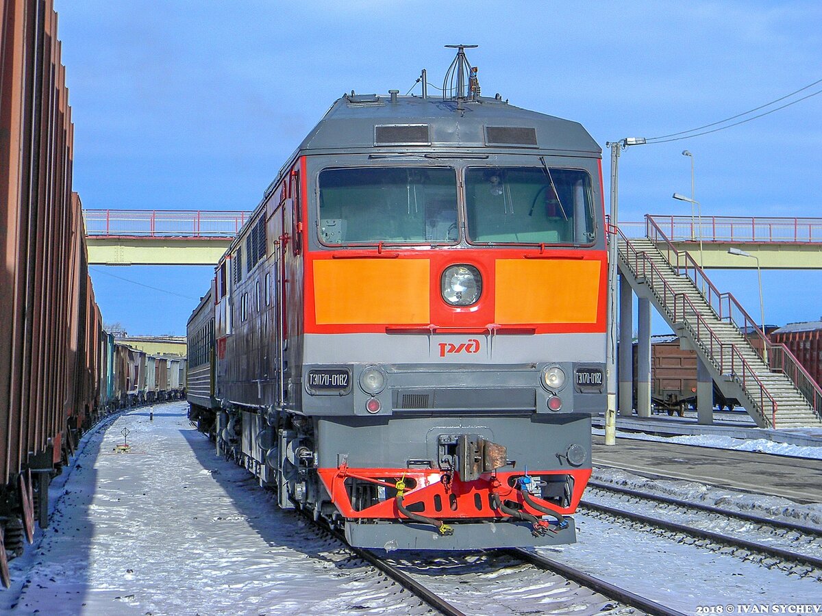 Ссылки на предыдущие части - внизу страницы. И вновь фотографии железнодорожного транспорта. И вновь - рубрика "Листая старый фотоальбом", т.е. снова фотографии из прошлого, которым более 5 лет. Правда сегодня еще решил добавить такой элемент в принцип отбора фотографий: что-то непривычное в раскраске, оформлении, номере. Сразу хочу сказать - непривычное для меня, что совсем не обязательно будет непривычным для кого-то, читающего этот обзор. 1. Начну с интересного, на мой взгляд локомотива ТЭП70. По буферным фонарям видно, что он из второй серии (первая - это опытные локомотивы с номерами до 0008). Причем этот - один из последних в серии, которая заканчивается номером 0185. Здесь же ТЭП70-0182, причем в окраске привычной скорее для настоящего времени - серо-светлосеро-оранжевая(красная). Февраль 2012, станция Ефремов. 2. А этот "тапок" уже третьей серии. Но окрашен в синий цвет, что непривычно для депо Елец, где все тепловозы этого типа были всех оттенков красного. ТЭП70-0319, ноябрь