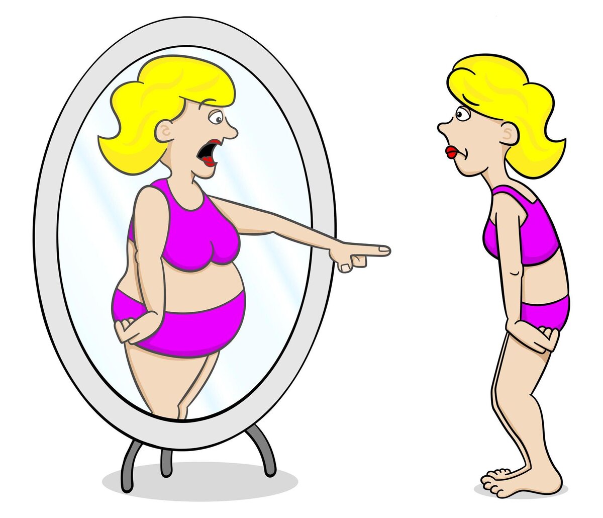 После вторых родов год сидела на декрете. Удивительное было время: двое детей, дома, ничего не надо. Можно ходить, как угодно одеваться как угодно и вообще, на всех и на все наплевать, кроме своих детей. Они должны быть накормлены, одеты, обуты, заняты чем-то, не угрохав что-нибудь и где-нибудь. Да мне как-то совершенно было наплевать на себя. Не до этого было. И тут я как-то пошла в салон красоты. К своему мастеру, чтобы волосы привести в порядок. А у нее там огромное зеркало и освещение такое, что любой прыщ будет виден за 3 метра. Ну и сижу я, любуюсь собой, пока она возится с моими волосами. Тут меня осенило!!! Что это за тетя смотрит на меня??? Это не я!!! Тройной подбородок! Мешки под глазами! Щеки, нет, щечища!!! Я не знала, как дождаться окончания стрижки. Мне было стыдно на себя смотреть. Нет, мне было неприятно на себя такую смотреть!!! Это был ужас просто. А дальше я зачем-то еще и в магазин пошла. А там мне предложили одежду 50!!! размера!!! Я даже смотреть не стала.