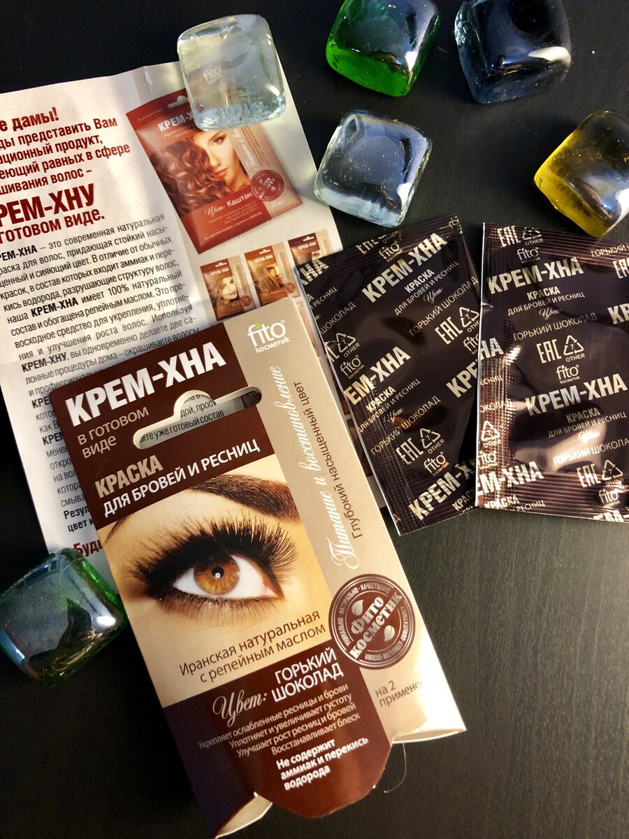 Сегодня в обзорке смотрим чудо-юдо средство салонной красоты в домашних условиях. Называется крем-хна в готовом виде, от компании Фито Косметик. Цена 50-70 рублей. Продаётся в Фикс Прайсе,Магнит Косметик,OZON и прочее. В упаковке два пакетика.Что хватит на две процедуры. Этим средством можно окрасить ресницы и брови.Цвет я выбрала самый нейтральный - горький шоколад. В пакетике УЖЕ готовая хна, которую не нужно разводить. Консистенция густая, не течёт.Это очень важно.Риск замарать лицо минимален. Запаха почти нет, очень лёгкая отдушка. Кисточки нет, так что наносить придётся либо ватной палочкой либо своей припасенной кисточкой. После нанесения смывается легко. Брови стали действительно ярче как и ресницы. Зуда, дискомфорта нет.Но ты все равно сделай тест на аллергию.Нанеси средство на изгиб локтя и посмотри через 30 минут.Есть ли реакция и нет ли аллергии. Что в итоге? Хорошее средство у кого свои родные брови, которым просто нужно цвет поярче.Или уход, так как хна питает волоски. Кар