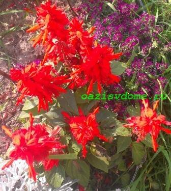 - Сальвия блестящая красная отличается длительным цветение и плотными соцветиями.