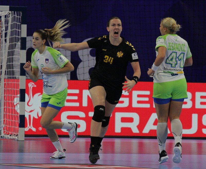 Перед матчами здесь саундтреком звучит композиция "В пещере горного короля" из сюиты Эдварда Грига "Пер Гюнт". И если в четверг мировые и олимпийские чемпионки не поддержали темп мелодии, то словенки и черногорки решили соответствовать настроению и посостязаться в скорости. Правда, быстрота чревата ошибками. Поэтому голов поначалу было не так уж и много. Марина Райчич успевала даже развлечься перехватами нерасчетливых длинных передач. Этому очень радовались черногорские журналисты.