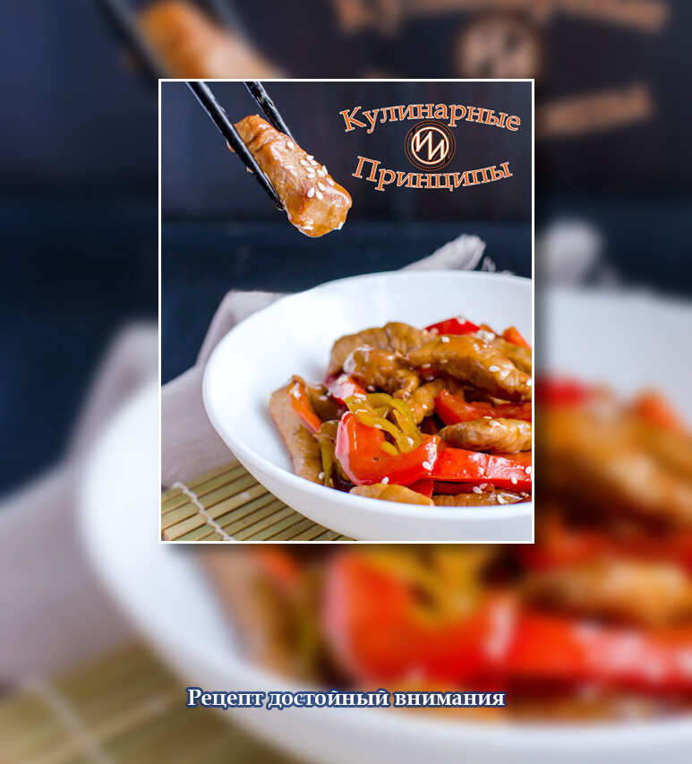 Замечательный способ разнообразить свой день китайскими нотками в еде. Готовиться довольно быстро. Нам понадобится: Свинина (мякоть) - 500 гр. Болгарский перец - 1 шт. Морковь - 1 шт. Лук репчатый - 1/2 шт. Чеснок - 2 зубчика Имбирь - 1 см. Острый перчик или молотый красный - по вкусу Черный молотый перец - по вкусу Крахмал - 1/2 ст. л. Растительное масло Для соуса: Сок половины лимона Кетчуп - 2 ст. л. Соевый соус - 3 ст. л. Сахар - 1 ст. л. Крахмал - 1/2 ст. л. Подготовка: Все ингредиенты подготавливаем заранее. В процессе жарки будет некогда. Нарезаем мясо на небольшие полоски, хотя это не принципиально. Промокните бумажным полотенцем, чтобы убрать лишнюю влагу. Добавьте к мясу половину столовой ложки крахмала и черный перец. Разомните его и дайте полежать 10 минут. Почему не мариную в соевом соусе или ещё в чём? При таком подходе, не удастся его как следует поджарить. Оно напитает жидкости и будет только тушиться. Если хотите получить золотистую корочку, просушивайт