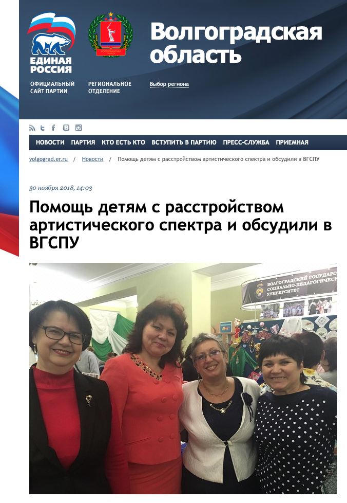 Ссылка на статью здесь: https://volgograd.er.ru/news/2018/11/30/pomosh-detyam-s-rasstrojstvom-artisticheskogo-spektra-i-obsudili-v-vgspu/