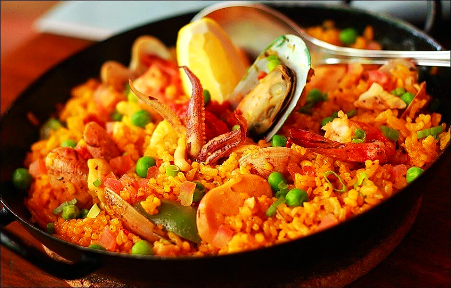 Паэлья – национальное испанское (валенсийское) блюдо из риса, с добавлением шафрана , оливкового масла. В паэлью могут добавляться курица, морепродукты, овощи. Название происходит от латинского слова patella — «сковорода». Существует множество рецептов приготовления паэльи. Сами испанцы утверждают, что их свыше трёхсот. Классическая паэлья, помимо риса, включает в себя 6—7 видов рыбы и морепродуктов, белое вино, курицу, зелень и специи. В некоторых регионах Испании готовится паэлья из фасоли. Традиционно подается по воскресеньям или в день святого Иосифа - 19 марта. Многие люди рассматривают паэлью как национальное испанское блюдо, но большинство самих испанцев считают, что это блюдо исключительно Валенсии. Валенсианцы считают паэлью символом именно своего региона. За двадцатый век популярность паэльи так сильно возросла, что сегодня это блюдо можно найти почти во всех ресторанах Европы. Результатом такого интереса к паэлье стало появление различных вариантов приготовления этого блюд