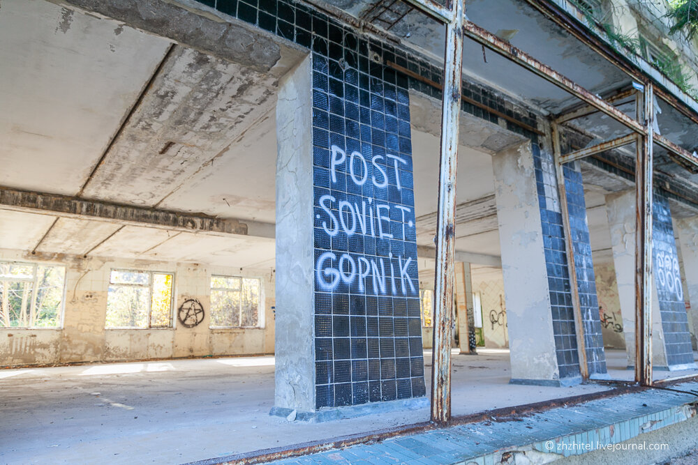 Мне нравятся заброшенные здания. У каждого из них своя история, своя атмосфера. При этом многие из них похожи, даже если находятся за тысячи километров друг от друга. Советские универмаги зачастую имели типовую архитектуру, их определяешь безошибочно. Один из таких универмагов посетил недавно в Крыму. Заглавную картинку для поста выбрал сразу же на месте. Универмаг относился к системе «Военторга». Вокруг было много войсковых частей, часть из них сохранилось до сих пор. Подобные можно было бы встретить в военных городках от Чукотки до Группы Советских Войск в Германии. Приехали мы сюда уже в конце дня. Внутри светло и просторно. Есть лестница, ведущая на второй этаж. Все, что можно было украсть, украли, что можно было сломать, сломали. Обычная история. Окна выбиты. Здесь, наверное, были кабинеты или подсобные помещения, например, ателье. Вид на площадь. Очень живописно. Находится этот универмаг не очень далеко от Коктебеля в сторону Краснокаменки, бывшего Кизилташа. Там есть еще н