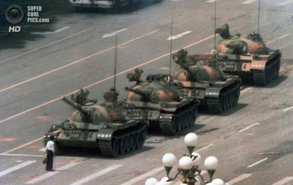 Китай. Пекин. 5 июня 1989 года. «Неизвестный бунтарь» — мужчина, ставший символом событий на площади Тяньаньмэнь. В течение получаса он в одиночку сдерживал колонну танков. Вскоре его увели, а танки продолжили свой путь по бульвару Сиань. (AP Photo/Jeff Widener) Китай. Пекин. 5 июня 1989 года. «Неизвестный бунтарь» — мужчина, ставший символом событий на площади Тяньаньмэнь. В течение получаса он в одиночку сдерживал колонну танков. Вскоре его увели, а танки продолжили свой путь по бульвару Сиань. (AP Photo/Jeff Widener)