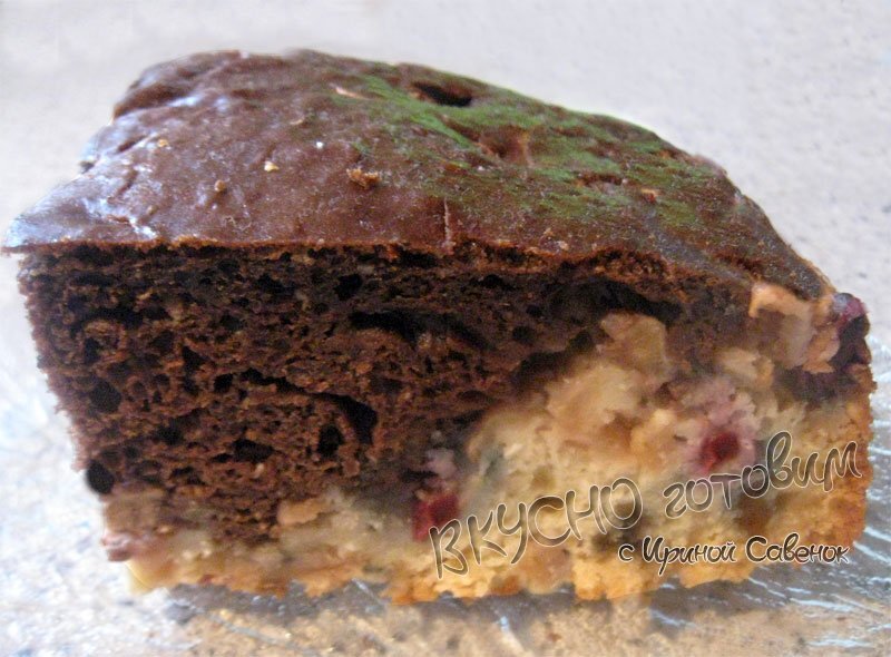 Ингредиенты: Рецепт приготовления Взбить яйца с сахаром, добавить творог и взбивая добавить соду (не гашенную), кефир, муку, смешанную с корицей. Тесто должно получиться, как густая сметана. Выложить 2/3 теста тонким слоем в глубокую форму, смазанную маслом. Сверху выложить слой фруктов. В оставшееся тесто добавить какао-порошок, перемешать и вылить на фрукты. Поставить в разогретую до 200°C духовку и выпекать 40-50 минут. https://vkusno-gotovim.com/recepty/3981-pirog-fruktovyy-ekspress.html