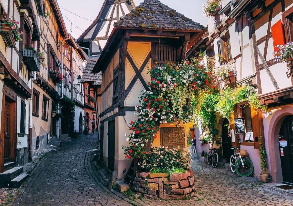 Если волею судьбы вы попадёте в Эльзас (за что ей уже спасибо), обязательно заверните в городок Эгисхайм (Eguisheim). Не заехать туда - ну просто преступление, поверьте! Даже если вас уже утомила европейская архитектура. Это совершенно волшебное место, городок будто бы застыл в Средневековье. Ну таком, знаете, выдуманном, где дамы и рыцари, веселящийся простой народ. Диснеевский мультфильм… В VIII веке герцог Эльзаса построил замок, который ныне стоит в самом центре городка. В XI веке вокруг замка начали строиться улицы, по которым мы можем с наслаждением прогуливаться, заходить в большие и малые винодельни и вкушать эльзасские вина, представленные в великом многообразии. Эгисхайм - колыбель эльзасского виноделия, первые виноградные лозы римляне высадили на холмах, окружающих городок, ещё в IV веке. А кроме того, здесь производится лучший французский кремон - игристое вино, ничем не хуже именитого шампанского. Да, ещё в городке вы найдёте несколько ресторанчиков, обременённых мишленов