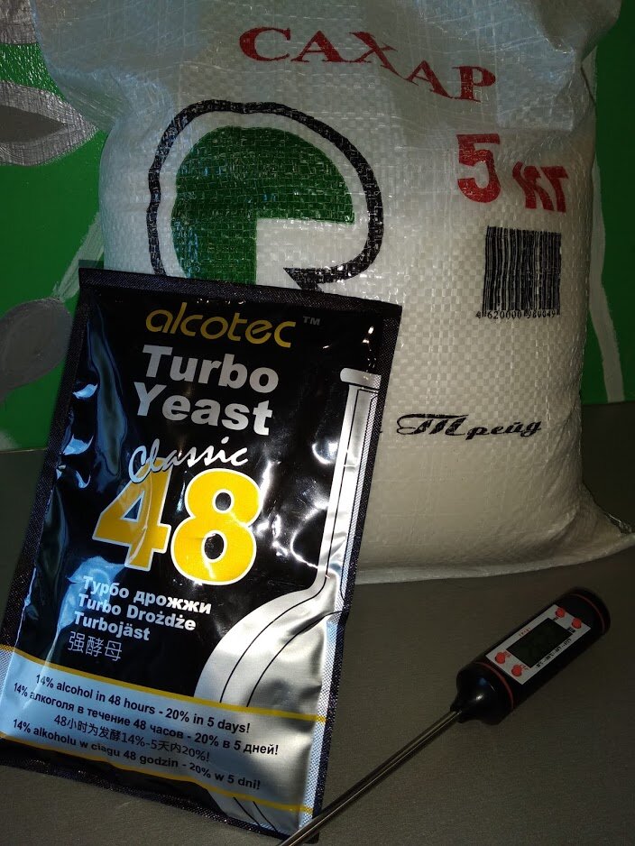 Делюсь своим способом приготовления браги для самогона Брага на сахаре - наверное самый простой и доступный способ для получения алкоголя путем дистилляции. Рекомендуется начинать самогоноварение именно с нее. Достоинства: доступность сырья (вода, сахар, дрожжи), быстрота (2-4 дня). Недостатки: стоимость зависит от цены на сахар. Рецепт В качестве емкость для брожения я использую 32 литровое ведро с крышкой из пищевого пластика. Недорого и удобно. Можно найти ведра со шкалой, термометром, гидрозатвором и краном, но все это увеличивает стоимость. Поэтому берем пустое ведро и делаем в крышке отверстие в 14 мм для прокладки гидрозатвора. Переплачивать за риски с отображением объема не вижу смысла. Наливаем воду с помощью мерной емкости и рисуем их сами маркером. В емкость наливаем 18 литров воды температурой 30 градусов. Насыпаем 5 кг сахара и размешиваем. В качестве дрожжей я предпочитаю спиртовые дрожжи фирмы Alcotec. В продаже на 2018 год имеются: "турбо 24" - 330 рублей; "24" - 300 р