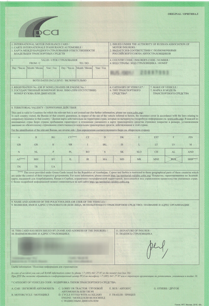 Что такое "Грин карта на автомобиль" и для чего она нужна?