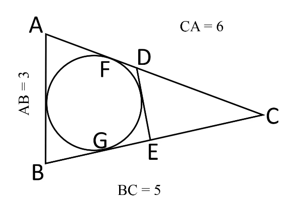 Решения и ответы на задачи с прошедшей недели: Задача №1. Периметр треугольника? ссылка на задачу Решение: На рисунке выше мы уже обозначили точки и F и G - это точки касания окружности отрезков CB и CA. Для этой задачи нужно вспомнить свойства касательных. А именно, что отрезки касательных к окружности, проведенных из одной точки, равны и составляют равные углы с прямой, проходящей через эту точку и центр окружности. В целом отсюда уже будет видно, что AB + DE = AD + BE, дальше выводим, что 3 + DE = 6 - CD + 5 - CE, и наконец DE + CD + CE = 6 + 5 - 3 = 8. То есть ответ 8. Конечно, эту задачку можно решить и сложнее. Но это самый простой и быстрый способ. Понравилось? Задача №2. Сложнее, чем выглядит ссылка на задачу Решение: Дорисуем хорды вот так: По теореме пересекающихся хорд окружности получаем: bd = c(c+a), отсюда можно выразить отрезок d так: Далее соединяем концы хорд a и bd как показано на рисунке: А этот отрезок уже будет равен диаметру окружности, то есть 2r. Далее по те