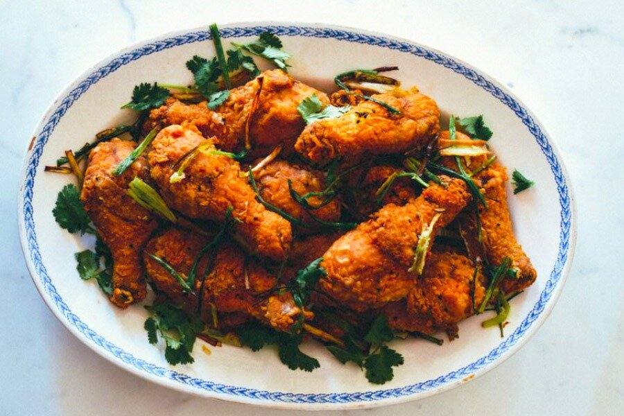 - Обжаривайте каждую порцию голеней около 15 минут. В середине приготовления переверните голени. Обжаривайте до золотисто-коричневого цвета и хрустящей корочки. Переложите на бумажное полотенце, а лучше на металлическую сетку.