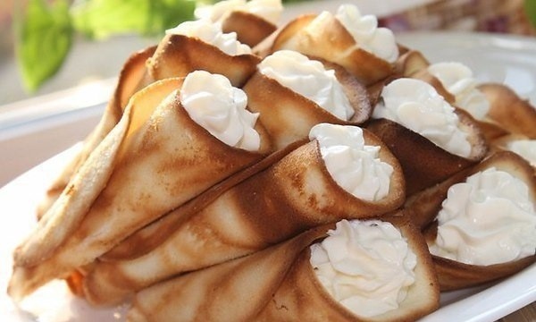 Выпекать в разогретой духовке. Достать из духовки и быстро свернуть в трубочки. Пока трубочки остывают смешать все ингредиенты для крема с помощью блендера до однородной массы и дать настояться 10 минут.