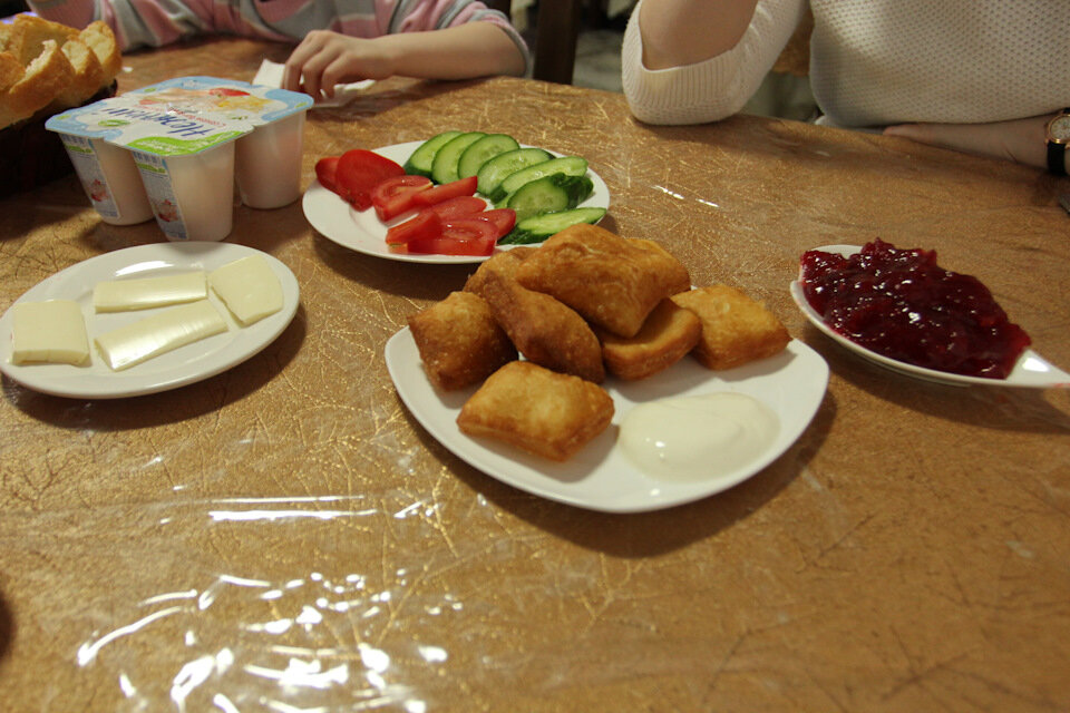 Ночью спали хорошо! Отдохнувшие и довольные мы отправились на завтрак, который включен в стоимость номера (1800 рублей), были приятно удивлены количеством и качеством завтрака.(яичница с колбасой, масло с хлебом, овощи, баурсаки с джемом, йогурты.) Йогурты съесть не смогли забрали с собой. В своих путешествиях используем для брони Букинг После завтрака сложили вещи, сдали номер и отправились изучать территорию отеля, пляж и озеро! На территории отеля есть баня, которую нужно заказывать заранее так как могут забронировать гости из других отелей. Так же летний вариант домиков-общежитий-танхаусов))) ну и, конечно, прелесть данного отеля близость к озеру. Выходим через калитку и попадаем на чудную тропинку через тополиную рощу. Стоить заметить уровень благоустройства вдоль озера. Удобные тропинки для прогулок и велодорожки. Очень хочется вернуться и погулять, погонять на великах. Озеро с прозрачной водой и песчаной-каменистым дном в окружении гор. Вид завораживает, но не поражает (очень
