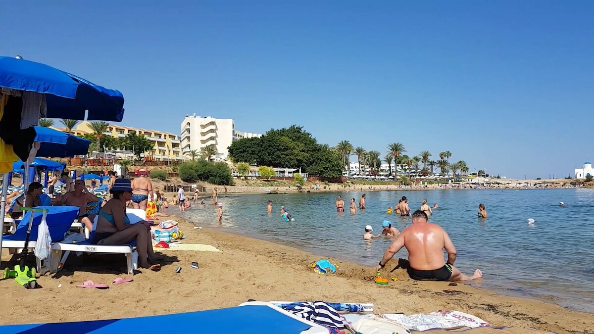 Есть категория людей, которые отправляются в отпуск, чтобы понежиться на пляже, покупаться в теплом море. Во время нашего отдыха мы посетили семь пляжей. Хотелось бы рассказать про них, упорядочив их от наименее понравившегося нам до лучшего на наш взгляд. Пляж среднего размера, находится в Протарасе. На берегу стоит церковь св. Николая, есть прокатная контора для водных развлечений. Здесь очень мутная вода, много водорослей, лежаки стоят довольно близко к воде. Песок какой-то грязный. Вообщем нам показалось здесь довольно не комфортно находиться. Пляж находится на севере Протараса. Довольно таки уютный, но очень маленький. Со стороны берега окружен скалами. Вода не очень прозрачная. Песок чистый. Я бы сказал, что на этом пляже много местных. Так как этот пляж был недалеко от нашей виллы, сюда мы часто ходили по вечерам окунуться в теплое вечернее море. Вход в море умеренно плавный, вода не прозрачная, песок чистый. Нужно отметить, что на этом пляже находится стоянка катеров, поэтому