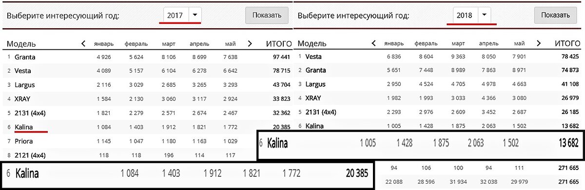 Начну с моей любимой статистики, статистика официальных продаж Kalina последние годы пребывала далеко не в лучшей форме, буквально в 2015 году было продано 35 тысяч калин, а уже в 16 всего 20 тысяч. Какое место Калина занимала в модельном ряду ВАЗ последние годы? Это этакий народный люкс, хочешь версия Кросс, с кроссовками для гольфа вместо набора автомобилиста (Нет? А, точно кросс — это внедорожная версия, прошу прощения), хочешь универсал на дачу летать, либо же женский вариант хэтчбек, аккуратный для неё и её сумочки. То есть как получалось: нищеброды выбирали гранту - она практичней и дешевле, буржуи окаянные на Весту новоиспеченную тратили сбережения, а Калину выбирал средний класс, склонялись они к этой покупке из-за оцинкованного кузова (хотя с Грантой у них одинаковая обработка, но в комментариях мне все упорно доказывают обратное, будь по-вашему) и более люксовой панели, говорят даже не скрипела она, а даже если и скрипела, то это аудиоподготовка такая. Lada Kalina в послед
