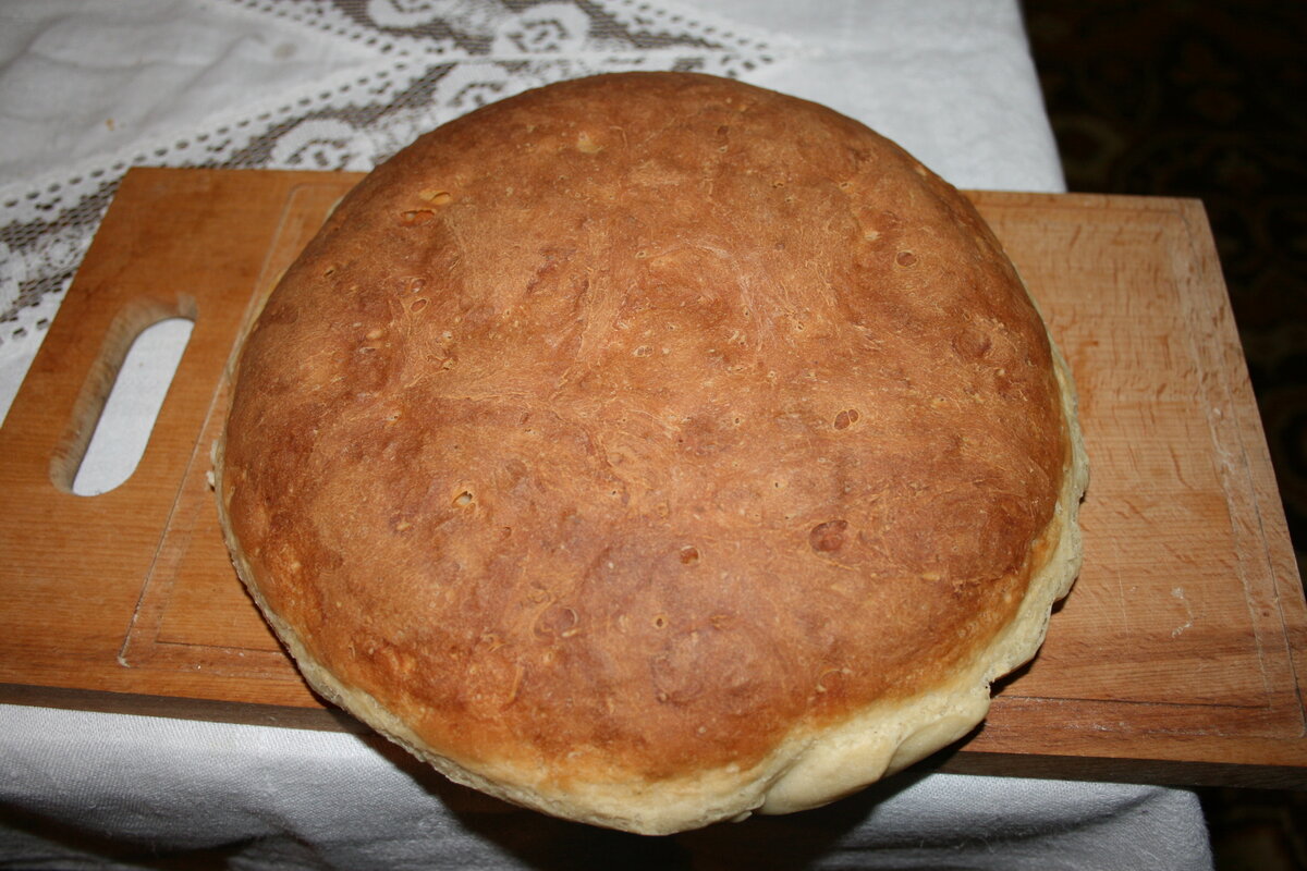 Магазинный хлеб мы почти не покупаем, мы его печём сами. Хлеб получается очень вкусный. Хлебопечка есть, но ей пользуюсь очень редко, так как этот хлеб намного вкуснее. Сам рецепт был взят из книги "Подарок молодым хозяйкам или средство к уменьшению расходов в домашнем хозяйстве" Елена Молоховец, С-Петербург 1901г. Только вместо молока, использую воду - так привычнее на каждый день. На молоке делаю по праздникам. 3698) Американский, очень вкусный, белый хлеб: 8,5 гр сухих дрожжей распустить в 380 мл молока (я делаю на воде), всыпать пол-столовой ложки сахара, чайную ложку соли и 410 гр. муки, размешать. Переложить в раздвижную форму (я беру обычную сковородку без ручки или утятницу, и застилаю пергаментной бумагой, бумага используется несколько раз. на бумагу немного (на кончике ножа), сливочного масла). Наполнять до половины - не больше. Поставить в тёплое место накрыв полотенцем. Через 1 час 30 минут поставить в горячую духовку на 30 минут. Температура 200 гр. Тесто не должно быть о
