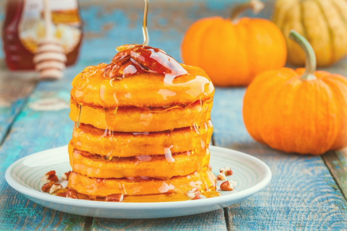 Такие блинчики легко могут стать прекрасным угощением на вечеринке в честь Хэллоуина, ведь именно тыква - основная составляющая этого блюда. Также блинчики займут достойное место среди традиционных масленичных блинов. Для вкусных тыквенных блинчиков нам понадобится: 100 г тыквы 2 яйца 100 мл молока 100 г муки 2 столовых ложки сахара Тыкву натираем на терке и тушим на слабом огне с добавлением сливочного масла 15 минут. Тушеную тыкву смешиваем с сахаром и измельчаем в блендере, добавляем яйца и молоко, перемешиваем. Теперь добавляем муку, снова перемешиваем и оставляем настаиваться 10 минут. Блинную сковороду нагреваем, смазываем маслом и начинаем выпекать блинчики. Жарим каждый блин на сильном огне 1-1,5 минуты, переворачиваем и обжариваем еще 1 минуту. Готовые блинчики выкладываем на тарелку, смазывая сливочным маслом. Блинчики можно есть просто так, или завернуть в них творожную массу. Приятного аппетита!