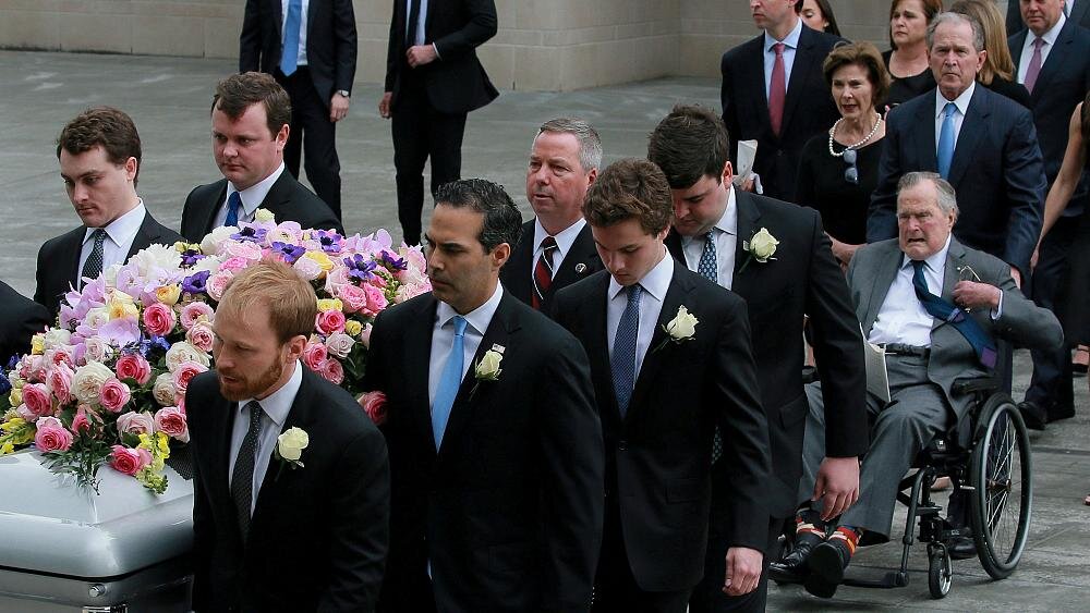 По сообщению агентства Bloomberg Буш скончался в пятницу в возрасте 94 года. Его останки будут перевезены в понедельник из Эллингтон Филд в Хьюстон на совместную базу Эндрюс в Мэриленде на борту правительственного самолета, зарезервированного для президентов в качестве военно-воздушных сил. В понедельник будет двухпалатная церемония прибытия в Капитолий США в 5 часов вечера, и он будет лежать в штате в Ротонде Капитолия, с общественностью, приглашенной отдать дань уважения с вечера понедельника до утра среды.
